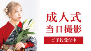 只今、2024年成人式の当日撮影の受付中です。9:30~ ご予約受付終了 10:00~ ご予約受付終了10:30~ ご予約受付終了